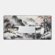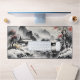 Un paisaje invernal con cabaña y montañas, estilo de pintura de tinta china