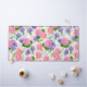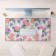 Patrón acuático con flores y teta azul pintado con acuarelas.