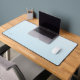 A trendy personalized pastel blue desk mat. This minimalist design features a soft gradient blue and modern calligraphy script font.