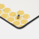 Una alfombra para el escritorio con un patrón de abeja sobre los peines de miel de arriba y abajo y los textos en gris y marrón personalizable: perfecto para hacer un regalo a un apicultor, un amante de las abejas, un amigo que ama la naturaleza. También se puede usar en casa como tapete de juego, oficina o sólo para tu propia familia.