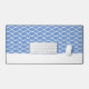Sienta el océano en este audaz y moderno diseño de verano con azulejos brillantes y ovalados de vieiras que se solapan en repetidas olas azules de verano de bonito delineadas en blanco fresco. Una amplia franja blanca de borde inferior de verano fría completa la composición.