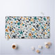 Un diseño de estilo terrazo con formas aleatorias en una gama de tamaños y colores.