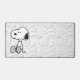 Esta obra de arte de Peanuts muestra a Snoopy sentado en el fondo de tiras cómicas Charles M. Schulz en blanco y negro.