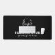 Sencilla alfombra de escritorio con su logo, nombre de negocio y etiqueta en negro.