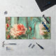 Inspire creativity with this personalized desk mat. It features a vibrant vintage floral design of pink and coral roses set against a unique distressed turquoise wood texture. This shabby-chic, rustic style brings rich color and dimension to your workspace. Add your name or message for a custom touch.