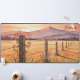 Brighten your workspace with this romantic painting of a sunset rural landscape, featuring pink, yellow, and blue wildflowers along a vine-covered fence, with purple mountains. Add your name or message for a custom, tranquil touch, perfect for nature lovers.