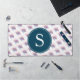 Esta alfombra de escritorio presenta un patrón de lionfish acuático en tonos rojos y azules. Personalice con su personalizado un monograma inicial en blanco sobre azul marino. Una idea tropical para la decoración de las habitaciones compartidas o de las habitaciones universitarias. Arte y diseño de pescado por Victoria Grigaliunas. Para ver más escritorios de playa de personalizable para volver a la escuela, visite www.zazzle.com/dotellabelle