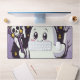 Un encantador y caprichoso poster con un fantasma adorable sosteniendo una espeluznante varita mágica adornada con un cráneo. El fondo muestra un castillo embrujado con torretas y murciélagos que vuelan por ahí, todo envuelto en un suave tono violeta. Esta deliciosa mezcla de adorables y espeluznantes elementos lo convierten en un complemento perfecto para la decoración de Halloween o en un misterio lúdico para cualquier espacio.