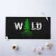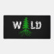 Amas el exterior y tienes raíces salvajes. Este diseño al aire libre es la palabra "salvaje" en una fuente de madera con un árbol y raíces.