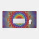 Add a burst of spectrum-spanning color to your office with this vibrant rainbow fractal flower desk mat. This intricate design features concentric layers of "petals" in every shade—from fiery reds and oranges to cool greens, blues, and deep purples. The kaleidoscope-style symmetry creates a focal point that is both energizing and harmoniously balanced.