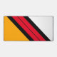 Este diseño fresco y deportivo presenta una banda de carreras en diagonal roja vívida y negra con rayas negras atadas. Los colores del fondo son amarillo dorado y blanco.