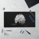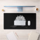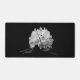 Rhododendron In Black And White Photo Desk Mat - Impresionante imagen en blanco y negro de una flor rododendrona blanca contra un fondo negro.