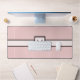 Añada un poco de sabor a su estilo con este sencillo pero clásico patrón de pinstripe con una base rosa pastel y una franja de acento negro anónimo profundo. Personalizar el monograma en el círculo con tu inicial para crear una alfombra de escritorio única para tu trabajo o espacio de juego.