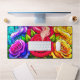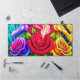 Esta alfombra de escritorio tiene una escena artística rosa.
