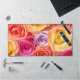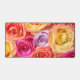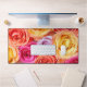 con un florido ramo de rosas de múltiples colores que llenan la alfombra.