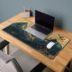 Bring the wild beauty of nature to your workspace with this elegant desk mat, featuring a stylized mountain landscape in rich navy blue and golden textures. With silhouettes of soaring birds and a deer, this design captures a peaceful wilderness vibe — perfect for adventurers, creatives, or anyone who loves earthy tones and scenic calm.