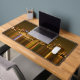 Mat personalizado de la mesa de San Diego: Esta es una fotografía de la silueta de San Diego tomada por la noche en octubre de 2020. Las luces de los rascacielos se reflejaban en el agua de la bahía, y la luz de la luna llena que crecía en ese momento llevaba a esos colores oscuros y cálidos. Perfecto para los que trabajan desde su casa en San Diego, California o cualquier otro lugar. Esta foto está disponible en productos que hacen el recuerdo perfecto de San Diego para usted o como regalo.