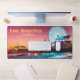 Mat de la mesa de sol de Santa Mónica Pier: Capturado durante una vibrante noche del sur de California, esta imagen de la rueda del Pacífico, la rueda de la fortuna del Parque del Pacífico en el muelle de Santa Mónica, brilla contra una sombría puesta de sol. El neón brillante de la rueda contrasta con el cielo rosa dorado y el suave brillo de las olas besando la orilla. Es un momento de nostalgia y asombro, perfecto para cualquiera que ame las vibraciones de las ciudades costeras, los monumentos icónicos o el pulso eléctrico de las noches de Los Ángeles. Quería que esta toma se sintiera viva, como una noche de verano que nunca quieres terminar.