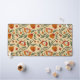 Seamless floral pattern featuring orange and red flowers with green leaves on a beige background. The design is vibrant and decorative.