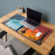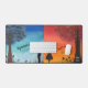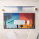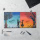 Two acrylic paintings that come together to form one scene: dark blues on one and pinks and oranges on the other. The two silhouettes meet in the middle, each holding one half of a heart to make a whole, with an added quote from the Bible's Song of Solomon -- a series of poems between two lovers.