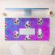 "Skully Pop Kawaii" Este diseño lúdico y atrevido presenta una vibrante mezcla de tonos pastel violeta, rosa y azul en un fondo de tablero de ajedrez degradado. A lo largo del patrón, hay cráneos de estilo personalizado adornados con arcos rosados, lo que les da un toque bonito aunque inspirado en el punk. Acompañando a los cráneos hay audaces corazones rosados y estrellas moradas delineadas, añadiendo un toque divertido y caprichoso. La estética general combina elementos de la cultura kawaii y emo-pop.
