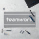This sporty design features white modern TEAMWORK text and sleek edge stripes against light gray background. The text and colors in this design can be personalized.