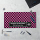 Una elegante fucsia o una apariencia de color rosa y negro caliente para tu lugar de trabajo, utilizando como fondo el diseño clásico del tablero de ajedrez. Los cuadrados de estilo de bandera a cuadros capturan la tendencia retro y le dan un aspecto masculino que aún puede combinarse con colores brillantes para incluir su paleta corporativa o marca de pequeñas empresas. Es sencillo subir tu logo para que aparezca junto al texto del personalizable, lo que te permitirá personalizar para un individuo o un jefe de empresa.