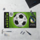 This green custom soccer ball desk mat features a fully customizable design with editable text on the soccer ball including name, number, and signature, customizable logo and logo text, customizable photo frame, multiple customizable text areas, and a bold speedy-style motion background, designed as a milestone sport lover gift for students, athletes, coaches, teams, and soccer fans for birthdays, school milestones, sports achievements, tournaments, season completions, and important sports-related moments.