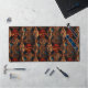 Esta alfombra de escritorio tiene un diseño de steampunk.