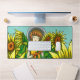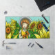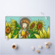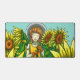 Un chica en un campo de girasoles en una cálida tarde de verano.