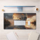Surreal visualization of a giant reflective sphere containing glowing clouds and sunset mirrored over a calm lake surface. Perfect for concept art, 3D visualization, digital matte paintings, and creative projects requiring surreal reflective elements.