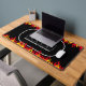 A tu hermano le encantará esta alfombra de póker personalizado de Jessica Amber - ¡mándame un mensaje sobre las órdenes de los personalizados! Esta alfombra de escritorio negro contiene espacios en blanco para la disposición de cinco tarjetas de Texas Hold'em, y dos bloques de texto personalizables: puedes añadir tu nombre, un chiste o simplemente anotar el tipo de juego. El texto predeterminado dice "Fiesta de Póquer de Aiden Smith" y "¡Esta mano está en llamas!" Los bordes superior e inferior tienen ilustraciones de fuego en rojo y amarillo. Puede cambiar todos los colores en la pantalla Personalizar. Útil en juegos de póquer como Hold'em y Omaha. También se puede utilizar como alfombra para el ordenador. Un gran artículo para la próxima noche de fiesta y póquer de tu hermano. ・・・ Para más suministros de noche de juegos, visite mi tienda Zazzle.com/Yeah_The_Boys