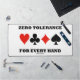 ¿Es usted un director duplicado del club de bridge? No hace falta ser un director de puente para disfrutar de este doble puente diciendo tapete de escritorio con los cuatro trajes de cartas junto con el siguiente consejo de puente de sonido: "Tolerancia cero para cada mano".