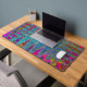 Este Guay Colorful Desk Mat presenta un diseño de ondas atómicas retro con acentos magenta, amarillo, Aqua, morado, turquesa y rojo con el cielo azul Trippy. El resultado es un diseño colorido, trippy, groovy, marcadamente ondulado y abstracto que te encantará.