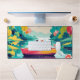 Esta es una alfombra original para el escritorio de Habatour Creations, decorada con auténtico ilustracion artístico, en la que aparece una pareja, en un bote en medio de un lago, rodeada de flores y corazones voladores. Copyright de @Habatour Creations Copiar o usar sin permiso es ilegal.