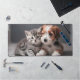 A puppy and a kitten side by side, united by their gaze and tenderness. This sweet and serene scene reveals the power of pure and innocent friendship between two worlds joined by affection.