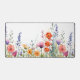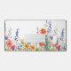 This vibrant colorful watercolor wildflowers desk mat showcases a pattern with a lively mix of purple, orange, and red jewel-toned blooms, paired with sleek modern script typography.
