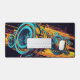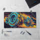Supercharge your gaming setup or creative workstation with a desk mat that radiates pure adrenaline. This massive mousepad showcases a phenomenal, high-octane illustration of an abstract mechanical engine part. Rendered in a gritty, industrial pop-art style, the design explodes with vibrant cyan and orange hues against a deep black background. The diagonal motion lines and grunge splatters give the artwork an incredible sense of speed and raw kinetic energy.