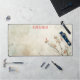 This pastoral customizable desk mat features a sa minimalist watercolor featuring two small birds perched on a thin flowering branch against a faded textured background. the soft tones and simple composition evoke calm, love, and quiet nature moments, ideal for greeting cards, romantic prints, or serene wall art. you can customize the text.