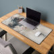This pastoral customizable desk mat features an abstract, surreal portrait of a female silhouette with red floral patterns and ink splashes around the head, symbolizing emotion, creativity, and inner chaos. the neutral background emphasizes the intense composition. you can customize the text.