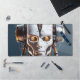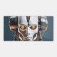 Elevate your gaming battle station or professional workspace with this spectacular, premium desk mat. Featuring a striking, highly detailed illustration of a futuristic android, this horizontal artwork perfectly captures the essence of advanced artificial intelligence. The sleek white ceramic-like armor beautifully contrasts with the intricate, glowing gold mechanical elements hidden beneath, while the commanding "Deus Ex Machina" typography adds a profound, cinematic touch.