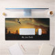 Yellow Sunset Grassy Meadow, Desk Mat. Arte Digital. Cielos amarillos con osprey y silla Adirondack. Personalizable completo; hazlo tú mismo. Edite la redacción según sus necesidades o elimine el texto por completo.