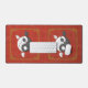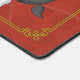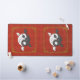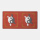 El Yin oscuro y el Yang claro el koi nadan unos a otros creando un Taijitu chino clásico, representando armonía y equilibrio en todas las cosas. Un marco clásico chino en oro enmarca a los dos peces, y un patrón tenue de símbolos chinos para la riqueza, la longevidad, la doble felicidad y la buena fortuna en un fondo rojo completan el diseño.