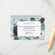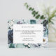 Diseñado para coordinar con nuestra colección de boda floral "Something Blue", esta elegante tarjeta de cerramiento de recepción botánica presenta un marco de flores pintadas con acuarela y plumas en elegantes tonos de azul, azul polvoriento, marfil y blanco.