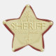 Haga un cargo de comisario adjunto personal con su Pegatina de distintivos de nombre. Grandes pegatinas de insignia para la fiesta de cumpleaños del vaquero oeste de Wild West con texto completo de personalizable y nombre "Adjunto", "Sheriff" y "Your Name".