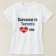 Esta reconfortante camiseta celebra el afecto con un simple pero poderoso mensaje: 'Alguien en Toronto me ama'. La palabra 'Toronto' se destaca en un azul vibrante, mientras que la palabra 'AMOR' se enfatiza con un corazón rojo audaz, que simboliza el calor y el cariño. Esta camisa es una manera dulce de expresar conexiones personales con la ciudad de Toronto, ya sea como recuerdo, como regalo para un ser querido, o como una manera de mantener a una persona especial cerca de tu corazón. Su diseño clásico lo hace adecuado para el uso diario, una combinación perfecta de estilo y sentimiento.