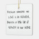 Cita "Porque alguien que amamos está en el cielo...hay un poco de cielo en nuestra casa", en el frente. Atrás es una plantilla de texto para el texto personalizado.