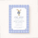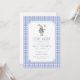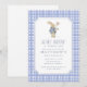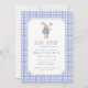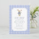 Primera invitación de cumpleaños con una dulce ilustración de conejo y un clásico patrón de gingham azul. Esta invitación de cumpleaños "Some Bunny Is Turning One" es perfecta para la fiesta del primer cumpleaños de un niño, la celebración de cumpleaños de primavera o un evento de cumpleaños con tema de conejito.