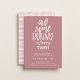 Agradable invitación de fiesta de cumpleaños "un conejo" en rosa polvoriento. Tipografía blanca con acento de oído conejito y soporte de patrón de tejido de cestería a mano.