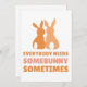 Envíe un poco de alegría de Pascua con esta encantadora tarjeta que incluye dos siluetas conejitas y la frase más sentida, "Todo el mundo necesita conejito a veces", en cálidos tonos marrones. Perfecto para amigos, familiares o seres queridos que podrían disfrutar de un poco más de amor esta temporada. Ya sea por Pascua, por los deseos de primavera o sólo por una nota bonita, esta carta es una forma deliciosa de difundir el amor de los conejitos.